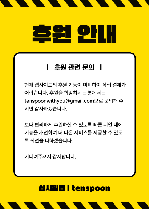 물품 후원도 가능합니다. 후원 희망 시 십시일밥 공식메일로 문의주세요!
